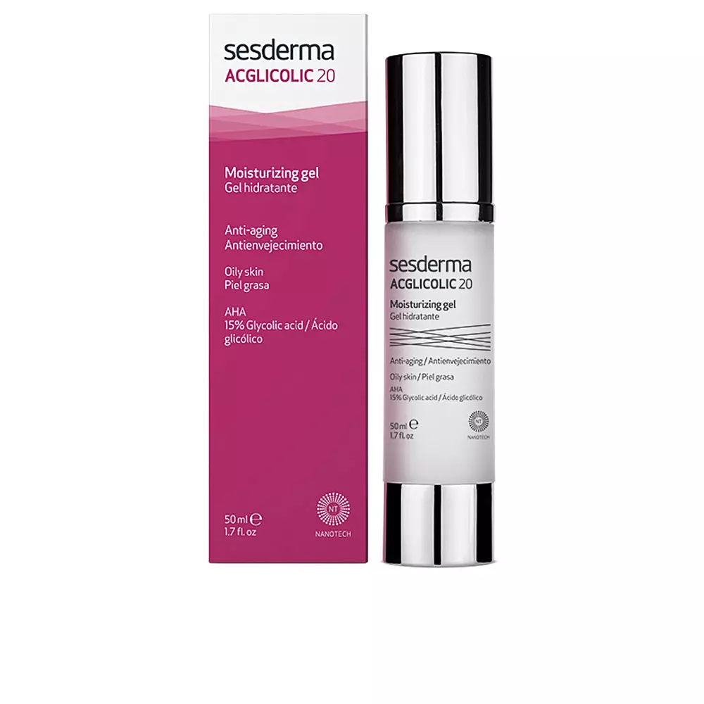 ACGLICOLIC 20 Sesderma moisturizing gel. Anti aging moisturizing gel for oily skin. It contains free and liposomed glycolic acid that renews, regenerates and hydrates the skin. Glycolic acid is an active ingredient of natural origin, obtained from sugar cane, grapes and beets, with great moisturizing, renewing and regenerating power. Its formula is completed with an exclusive combination of active ingredients that give it antioxidant and regenerating properties thanks to liposome Ergotionine and plant stem cells. Apply in the morning or at night on the face with a gentle massage until completely absorbed.
